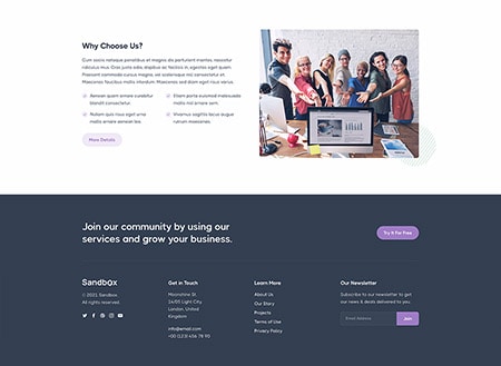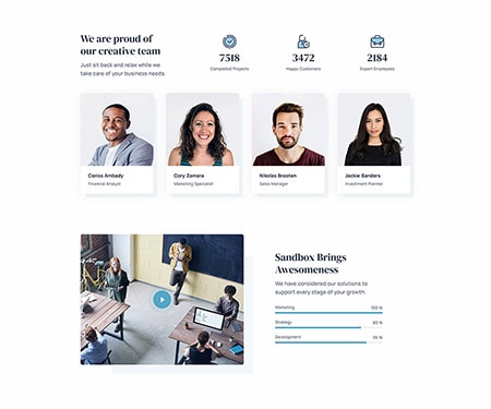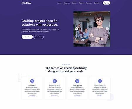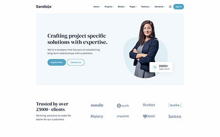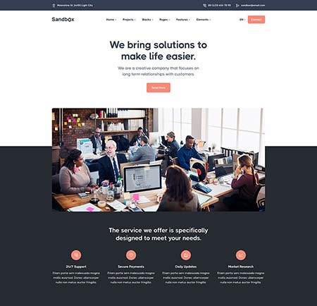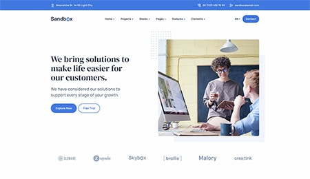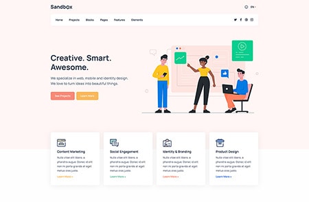 Sandbox includes amazing features and elements to create rich and attractive pages.